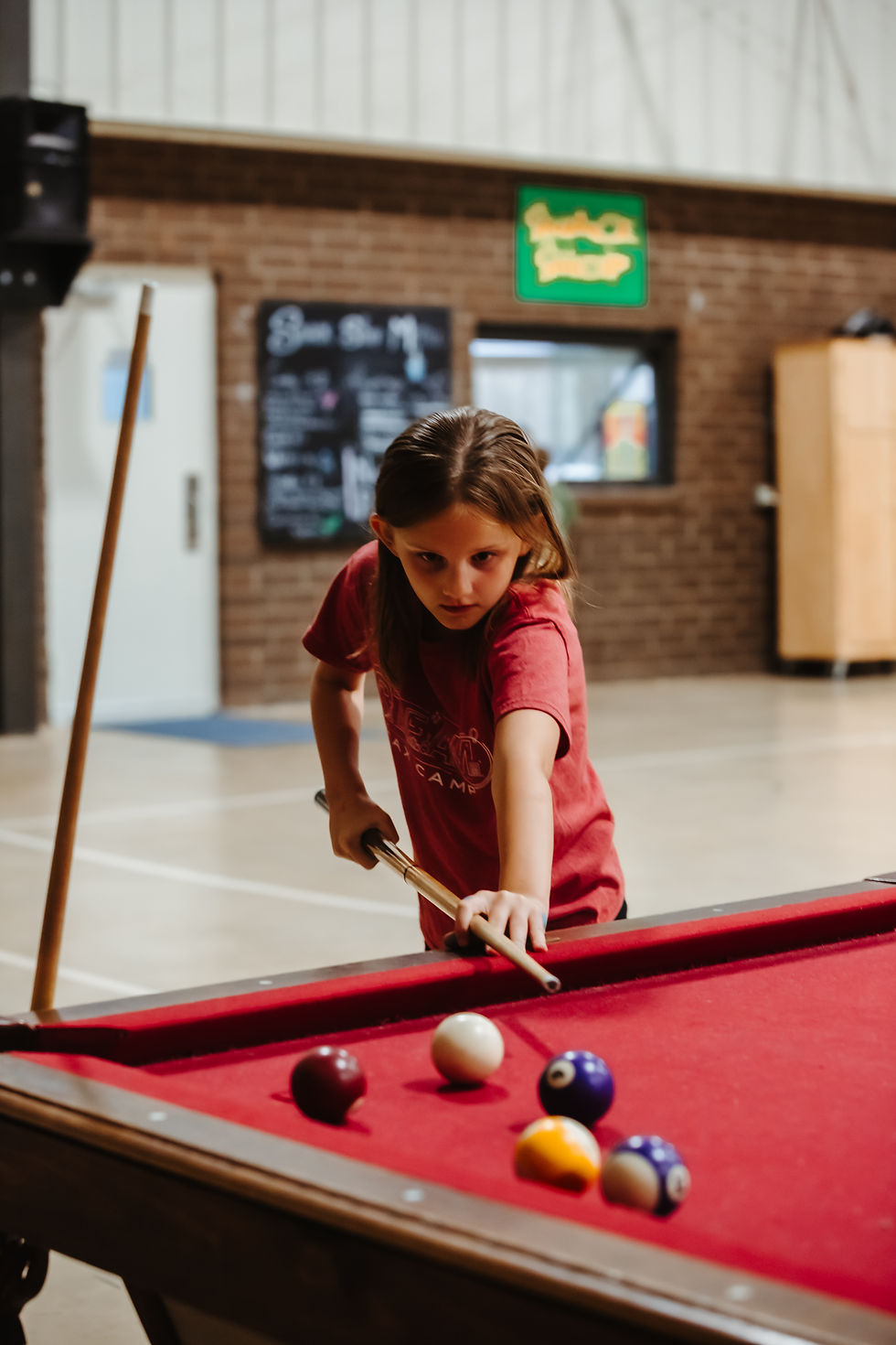 Carpet Ball, Gymnasium, Fishing, “Little Man” basketball, Water Wars, Water Cable Ride, Water Basketball, Slingshot Range, Disc Golf, Cornhole, Ga Ga Ball, Snack Shop, Billiards, Human Foosball Court, Water Trampoline, Foosball, Ping-Pong, Bumper Pool, Air Hockey, Canoeing, Paddle Boats, Lake, 540 Foot Tandem Zip Line, Camp Store, and Craft Shop